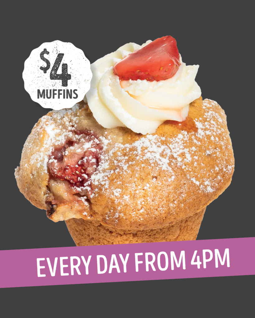That’s right, after 4pm, ALL muffins and scones will only be $4 each (while stocks last!). Available every day until the 5th of December.