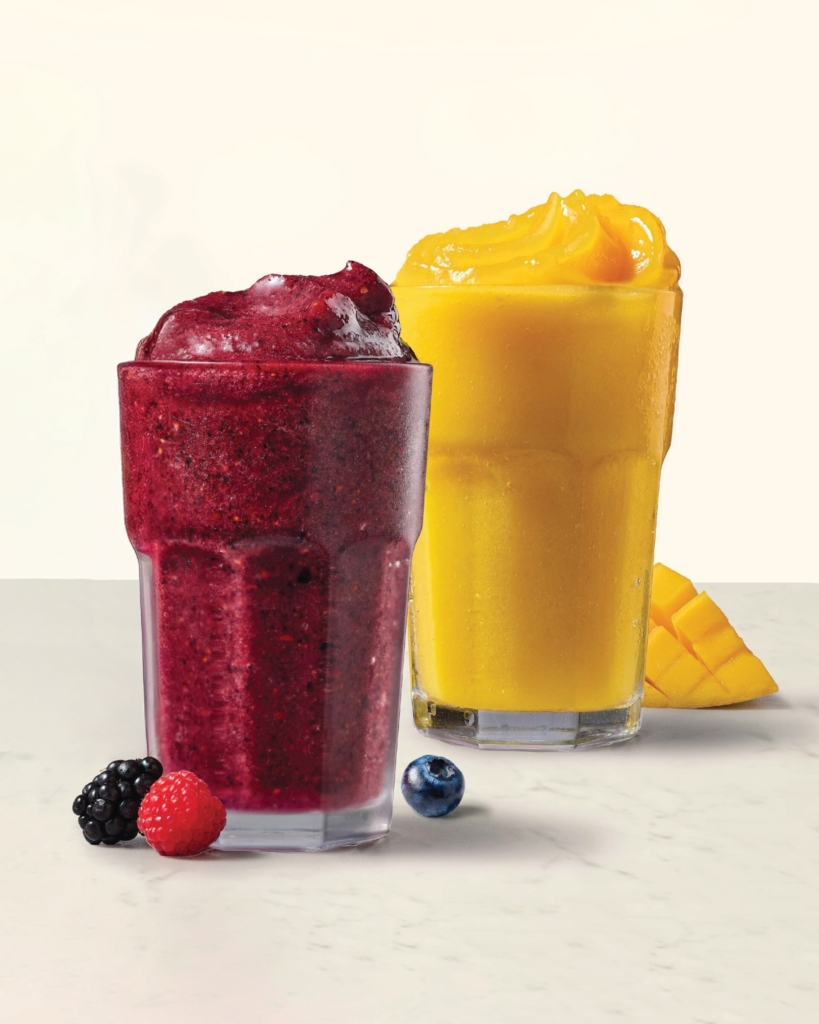 If it’s too warm for your standard hot drink, try switching it up with one of our new fruit frappe options. 🫐 Mixed Berry and🥭Tropical Mango!