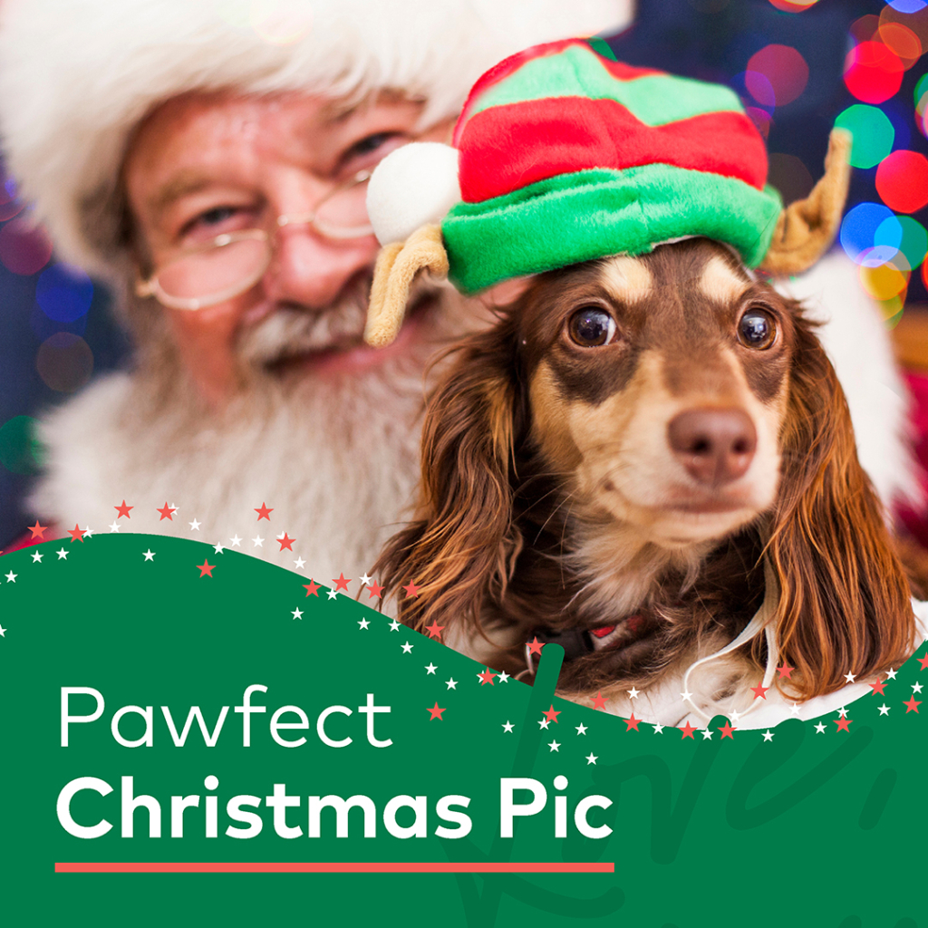 Santa Paws photos will be held over 5 Saturdays, plus a Wednesday late night, in the Santa sleigh. Bookings essential.